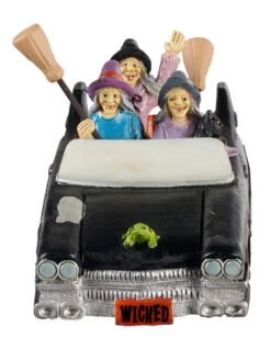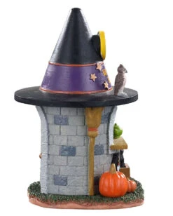 Die fantastisch arrangierte Szenerie der Spooky Town Figuren lässt sich von allen Seiten her betrachten und ist detailverliebt von Hand bemalt. Mit dem Diorama lässt sich vieles dekorieren und das nicht nur als Teil der Halloween Village „Spooky Town“ Kollektion. Wie wäre es, die Hexe mit dem Katzenkalender zum Teil deines Gruseldorfs zu machen oder das Figurenensemble als außergewöhnliche Halloween-Deko für den Tisch, die Vitrine oder die Fensterbank zu verwenden? Die Figuren sind fest mit der Bodenplatte montierte. Die nummerierten Hängeschilder im Katzendesign lassen sich austauschen. Das Diorama besitzt keine Beleuchtung, Bewegung oder Sound.