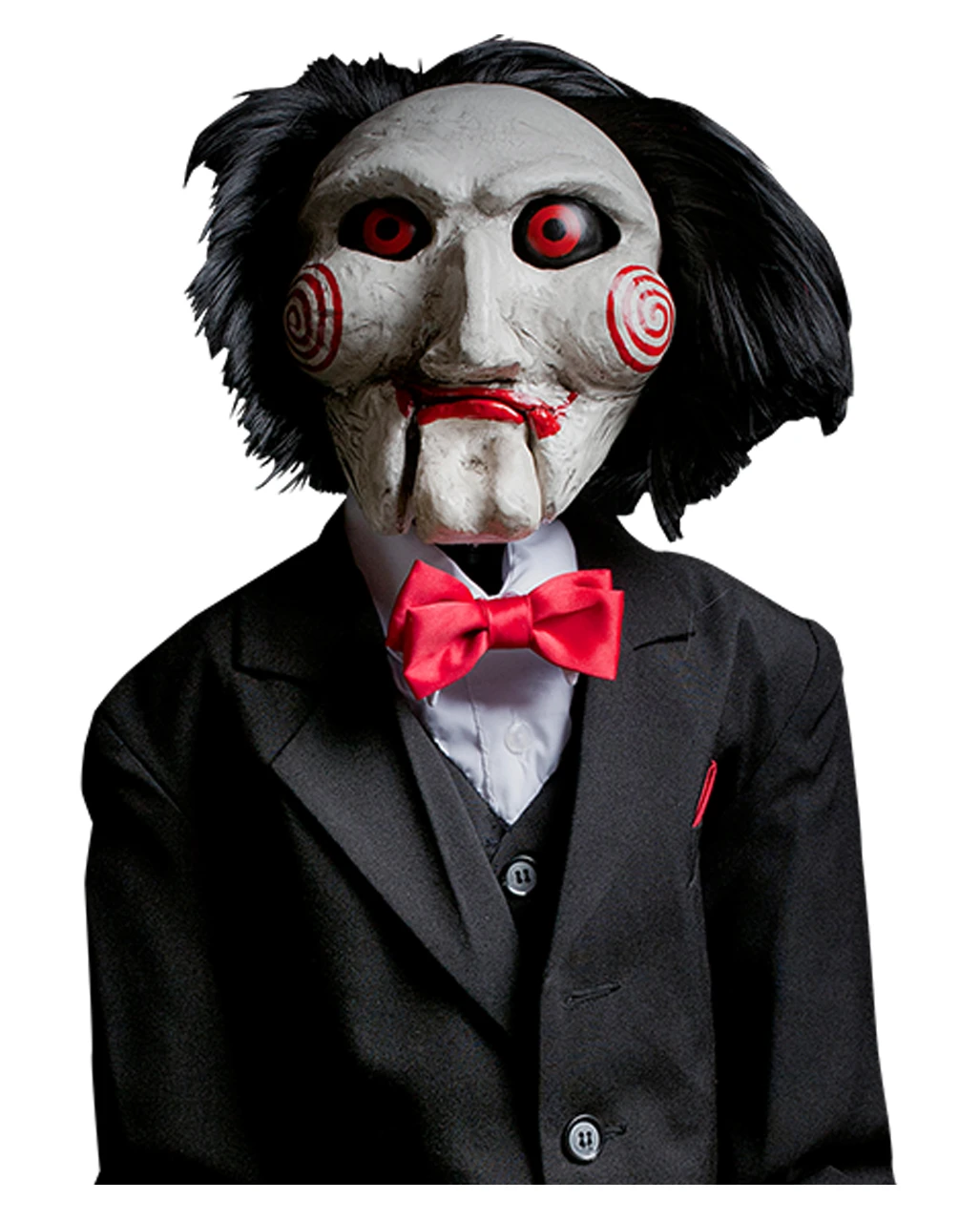 Verwandle deine Wohnung in eine richtige Folterkammer mit unserer SAW Puppe Billy! Die 105cm große Deko Figur wird deinen Gästen auf den kommenden Halloween Feiern, Grusel Festen und Mottopartys mit Sicherheit einen riesen Schrecken einjagen!